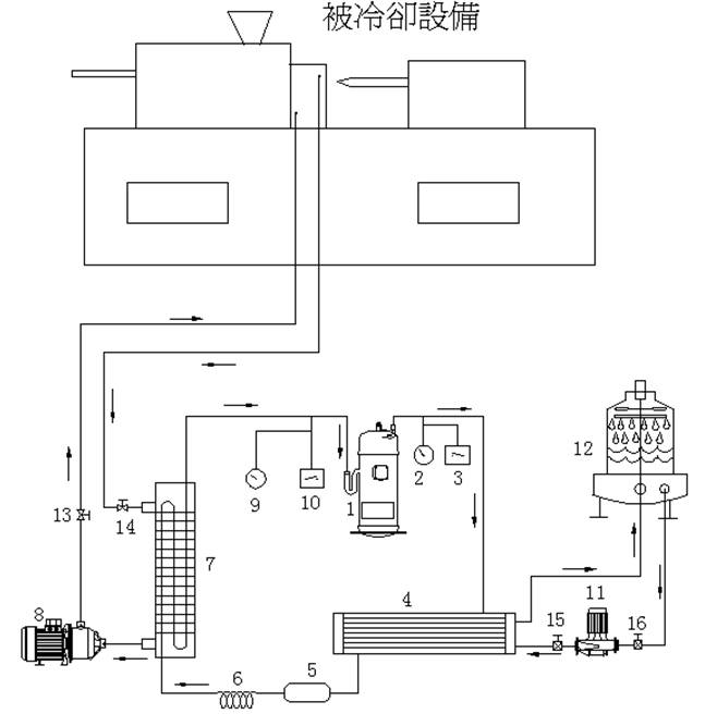 2、根據冷凍機製冷量選用匹配的冷卻水塔。蘑菇TV网页登录入口管路配管,請根據機身喉尺寸進行安裝,切勿將冷卻水管尺寸縮小,這樣會引起高壓超載,影響製冷效果及增加耗電量;